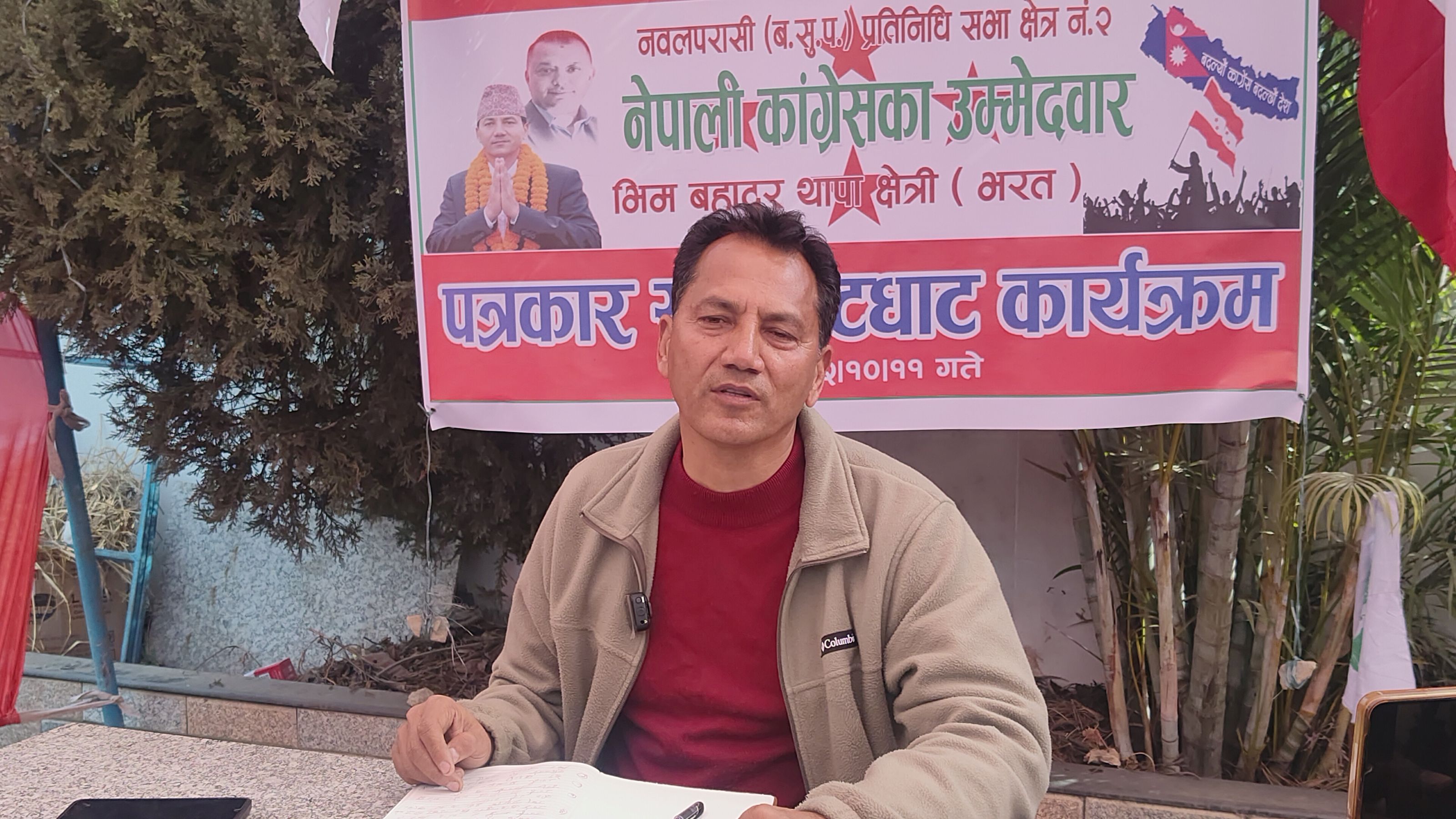नेपाली कांग्रेसका तर्फबाट नवलपरासी निर्वाचन क्षेत्र नम्बर २ का उम्मेदवार भीमबहादुर थापा (भरत) ले आफूले आर्थिक र सामाजिक क्षेत्रमा पुर्याएको योगदानका कारण मतदाताले आफूलाई विजयी गराउने विश्वास व्यक्त गर्नुभएको छ। सुनवलमा आयोजित पत्रकार भेटघाटमा बोल्दै थापाले आफ्नो विगतको नेतृत्वदायी भूमिका र विकासका कामहरू नै मुख्य चुनावी एजेन्डा भएको बताउनुभयो।