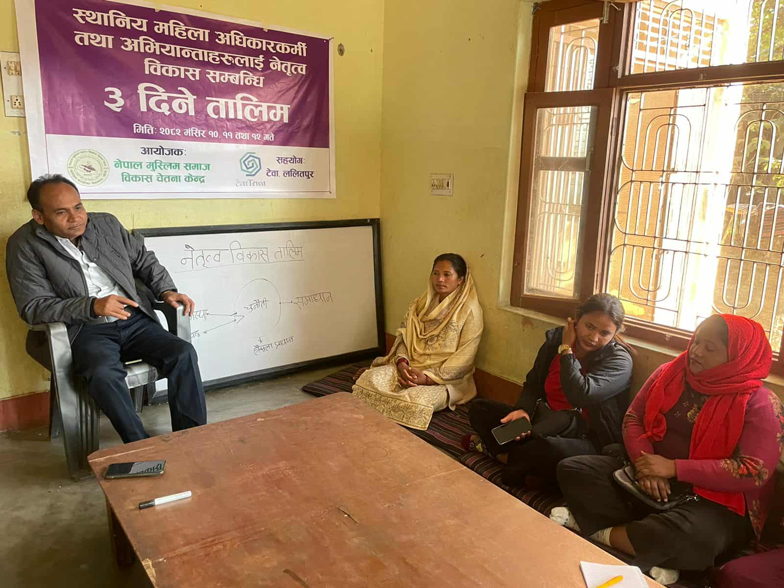 टेवा, ललितपुरको सहयोगमा तथा नेपाल मुस्लिम समाज विकास चेतना केन्द्रको आयोजनामा सञ्चालित यो तालिममा बाँके जिल्लाका नेपालगन्ज उपमहानगरपालिका, कोहलपुर नगरपालिका, डुडुवा गाउँपालिका, र जानकी गाउँपालिकाबाट ३५ जना अगुवा महिला, अभियन्ता, र स्थानीय ग्रामीण महिला अधिकारकर्मीहरूको सहभागिता रहेको थियो।